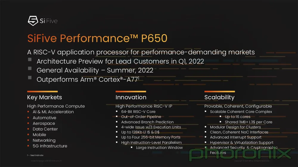 If i recall correctly the sifive unmatched is still pretty slow compared to ARM( https://www.phoronix.com/scan.php?page=article&item=hifive-u... ).Now this board is not the one in question(P650) but we'll have to observe upcoming benchmarks [for which i recommend phoronix]